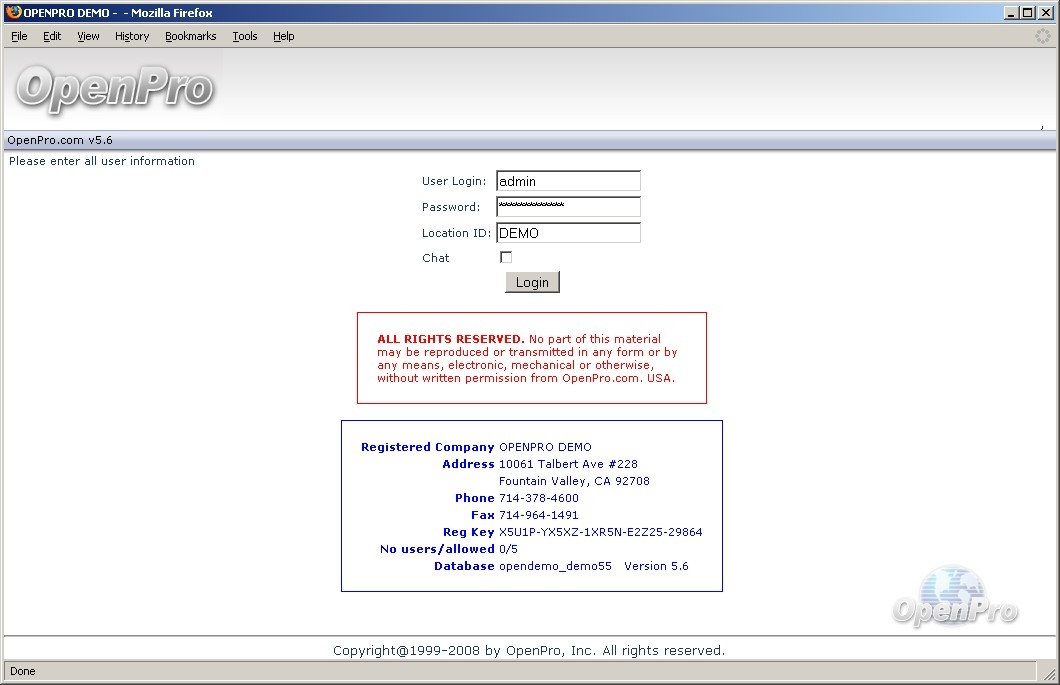 Thank you for your interest in OpenPro. This Demonstration Guide is designed to orient you to the OpenPro product. The guide contains getting started information as well as a more detailed overview of the basic business flow. We hope you will find the scenarios in the overview to be useful. We loaded the same set of data used to populate the overview screen shots into the database you will be accessing during your evaluation period.