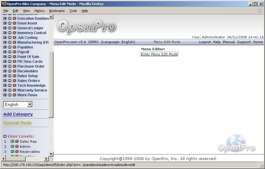 Log in to OpenPro ERP software