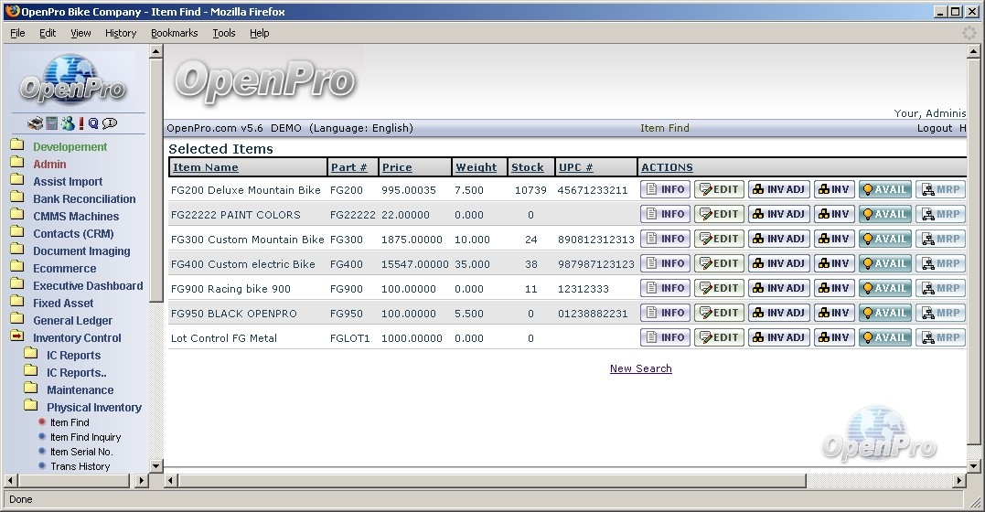 All the screens have many different options for searching records as well as sorting through the data that is displayed on the screen. One option is using the search button, which will show all the records in the database. OpenPro ERP software has very powerful options with every search screen, while remaining user-friendly.