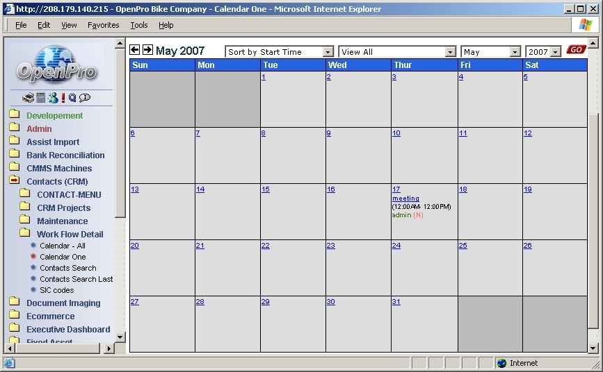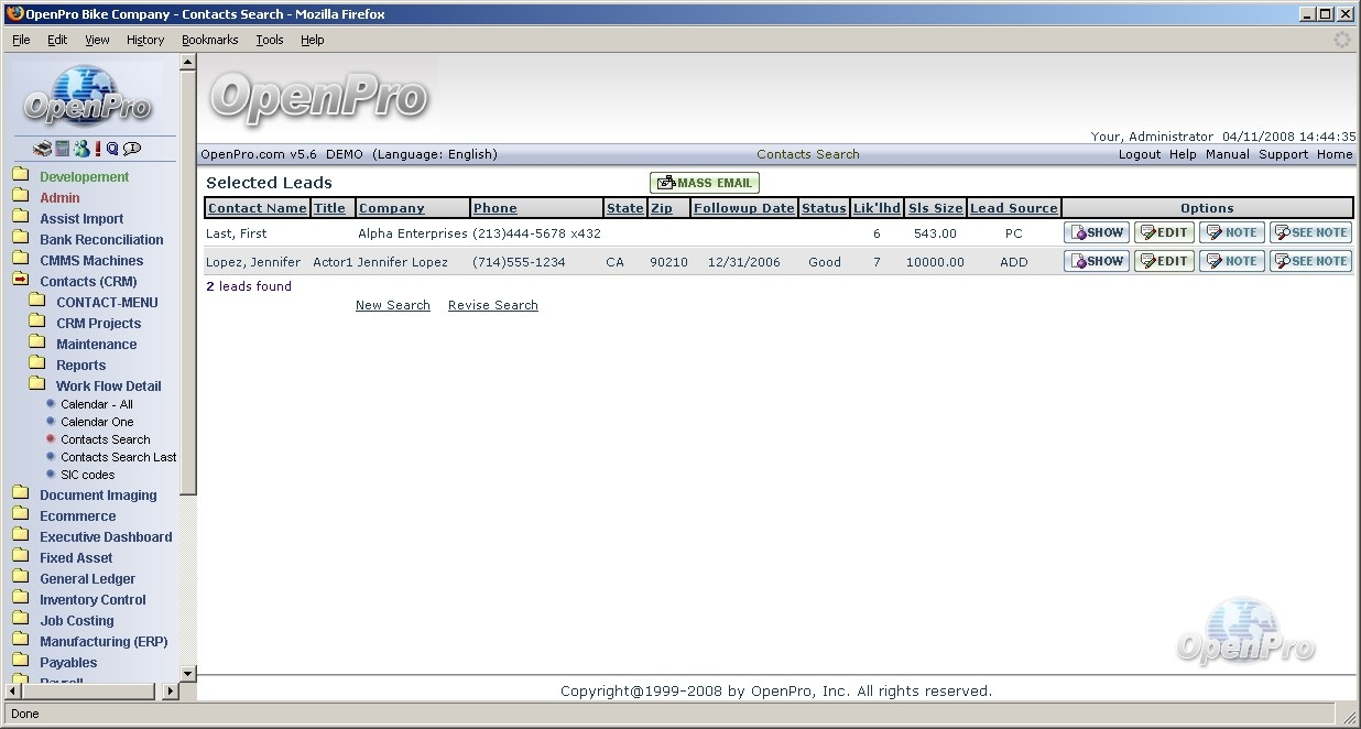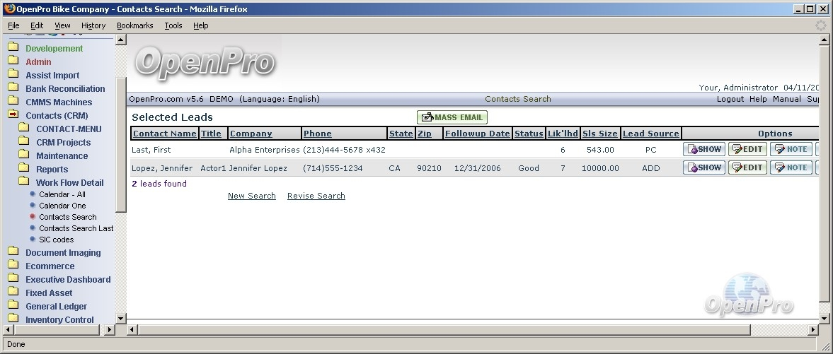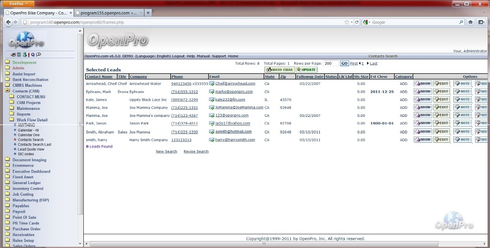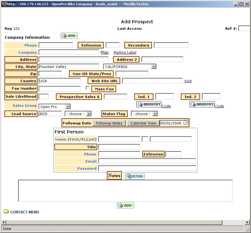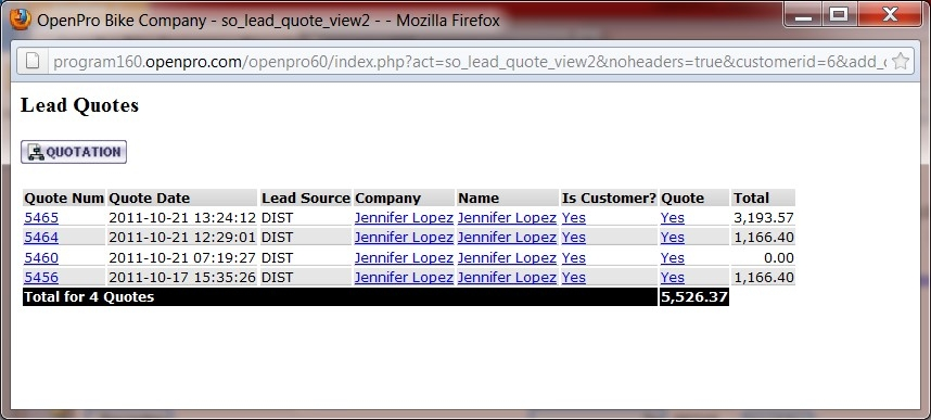 This section is a continuation of Application Demonstration Guides I and II and is designed to introduce you to the basic process flow through the Openpro Customer Relationship Management Solution. We assembled a series of related screenshots to illustrate a logical sequence of business scenarios. We hope you will find the scenarios to be useful. Feel free to test them out yourself. Your evaluation database comes pre-loaded with the same sample data used to generate the screen shots in this section.