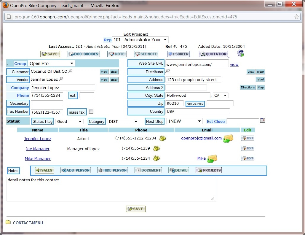 When you select EDIT for the lead, you will see a Detail screen: