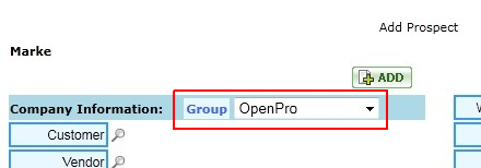 Each CRM entity is assigned to one Group. When adding or editing a CRM entity, the Group is selected from a pull-down list near the top of the screen (see below).