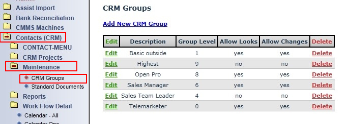 ==> Click Contacts (CRM) ====> Click Mainteance ======> Click CRM Groups