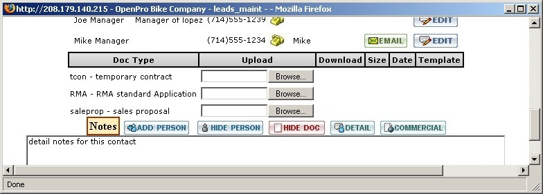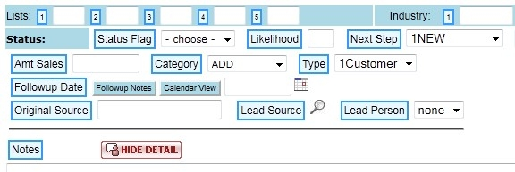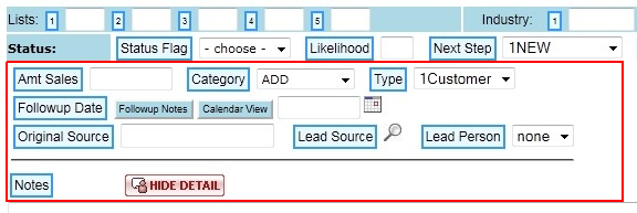 Clicking the Hide Detail button (in red at the bottom of the Sales Details Area as shown above) will hide the Sales Details Area and return the CRM screen to its original state.