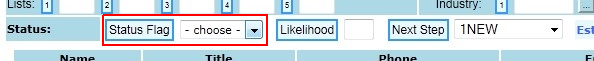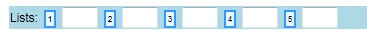 There are five ‘Lists’ fields above the Status Line on the CRM Screen. They are numbered 1 through 5 as shown below.