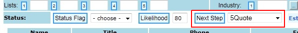 Next Step is a code used to capture the next action that should be taken to attempt to secure the lead’s business. The possible values are maintained by the user (explained later).