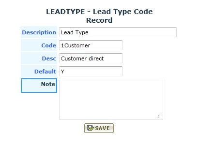 ==> Click Rules Setup ====> Click Table ======> Select Lead Type Code * ========> Click Go