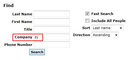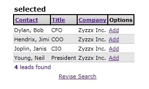 The search results will be shown in a new window. In our example, four contacts were found who work at companies beginning with “zy” (there is only one company beginning with “zy” so these contacts all work for the same company).