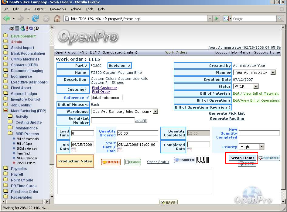 OpenPro Application Guide - Manufacturing Work Order Scrap Processing (MS)