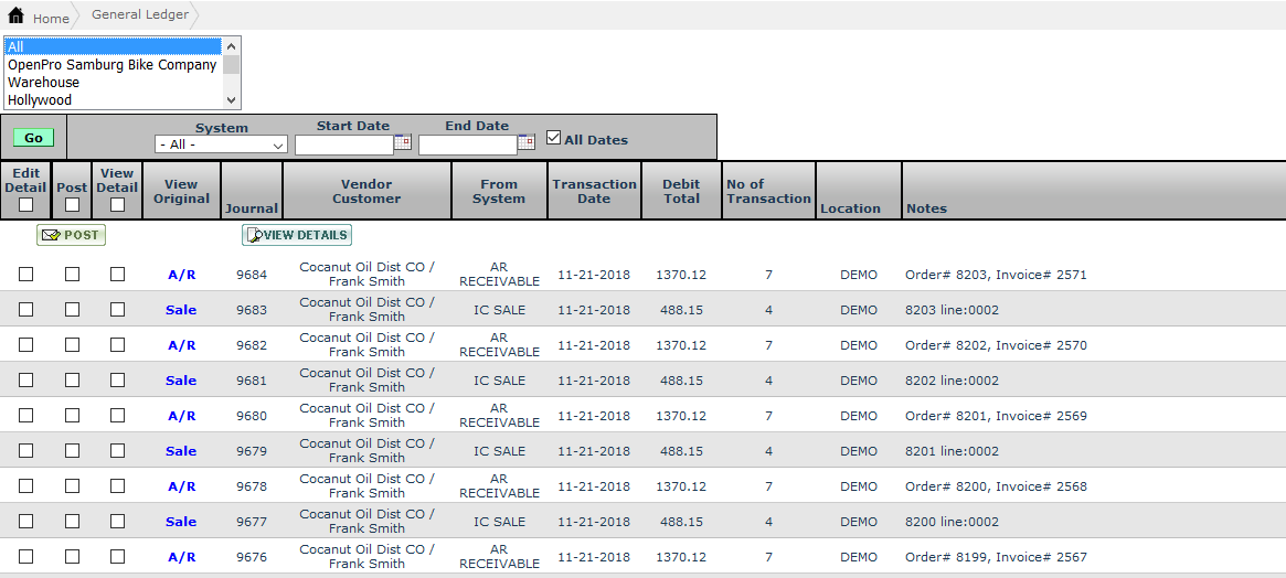 View Detail: Allows you to drill down to the specific entry details