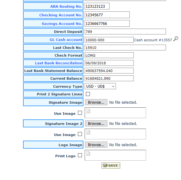 - Last Check No. This is the number of the last check used - this needs to be updated in case you refresh the check printing windows