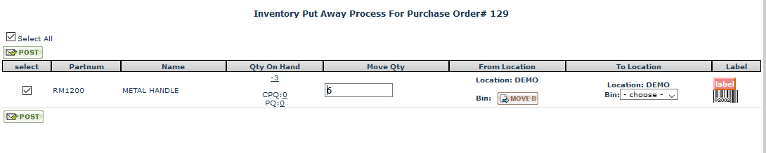Move Qty: This is the number of items to be moved from the dock/receiving area to the warehouse
