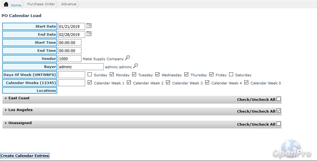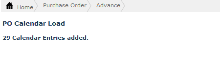 The PO Calendar Load screen allows you to create purchase order delivery schedule to help you in tracking all deliveries against the PO. Once you create calendar entries, you will be able to monitor which Purchase Orders are due on the scheduled days thus you will not miss out on any orders.