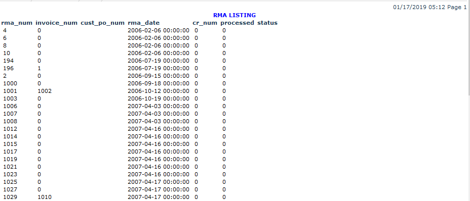 The RMA Listing screen shows a list of goods that have been returned to the store(s) either for refund, replacement or repair. once you click Make Report, you will see all RMA processes done with details such as RMA Number, customer PO number, RMA date and status.