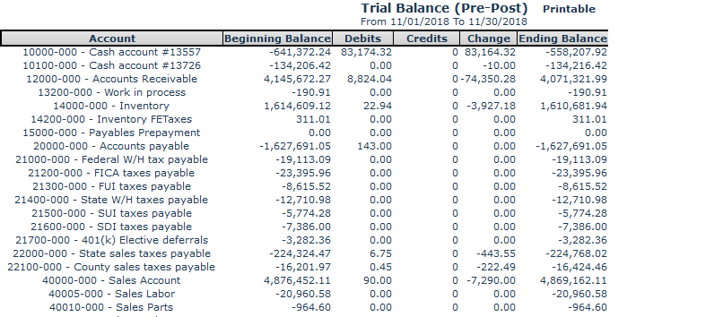 Beginning Balance: This is the account balance as of the beginning of the trial balance generation period