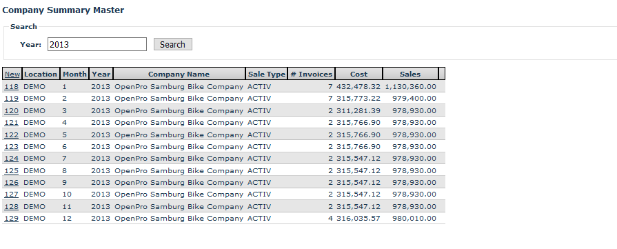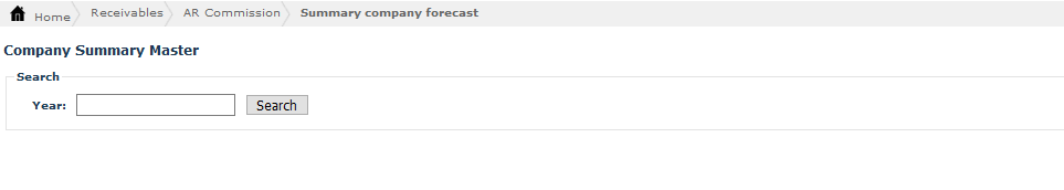 The upper section of the screen allows you to enter the year for which you want to view the commissions projections. The lower part of the screen displays the total value of sales against invoice total per company.