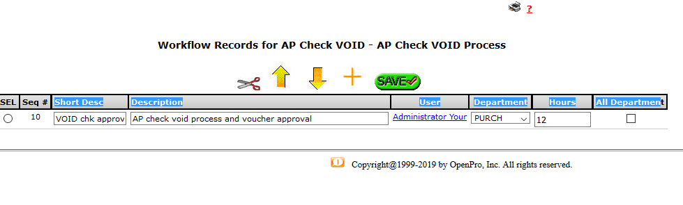 The workflow view screen allows you to add, delete or modify different work cases based on defined categorization. You can enter a Short Description on the work case, detailed Description, responsible user, department and Hours needed to complete it.
